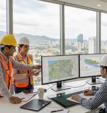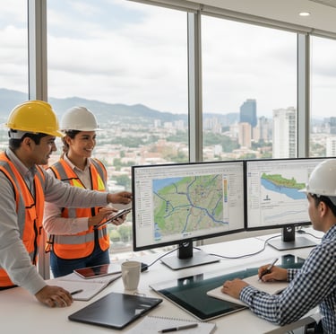 Preparamos el terreno digitalmente para que cada trazo sea exacto y evite sobrecostos.